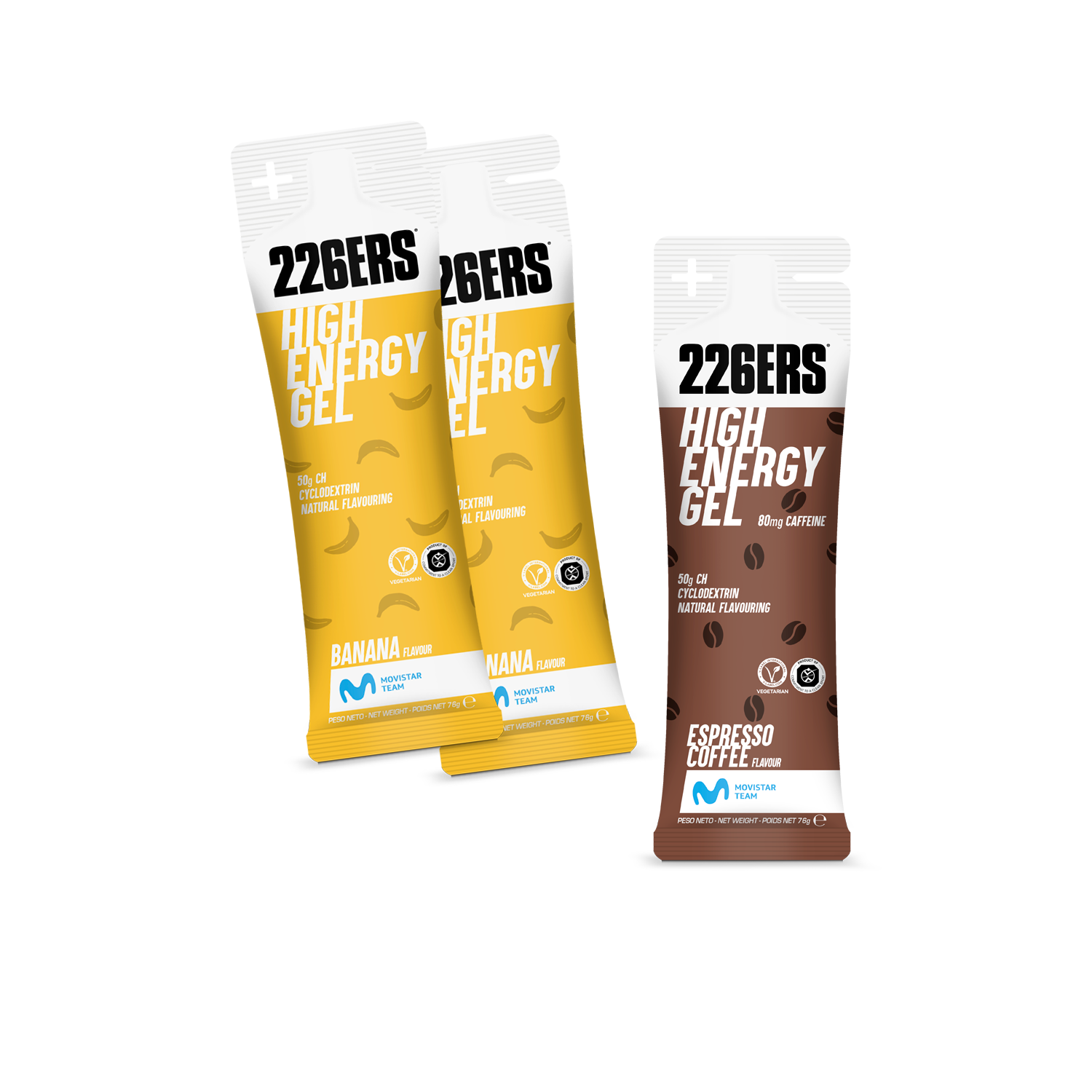 1x High Energy Gel con Cafeína (Café Expreso con 80mg Cafeína o Cereza con 160 mg de Cafeína)
